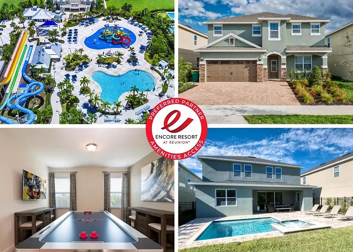 La Lovely Home By Rentyl Near Disney With Private Pool, Air Hockey Table & Resort Amenities - 7467M ofrece masajes parque acuático, zona de pícnic y zona de juegos para el ocio de los huéspedes, y se encuentra a una distancia de 6 km del Hyde Park Golf Club. Con un aparcamiento en las instalaciones, esta villa residencial está situada en el barrio Celebration.